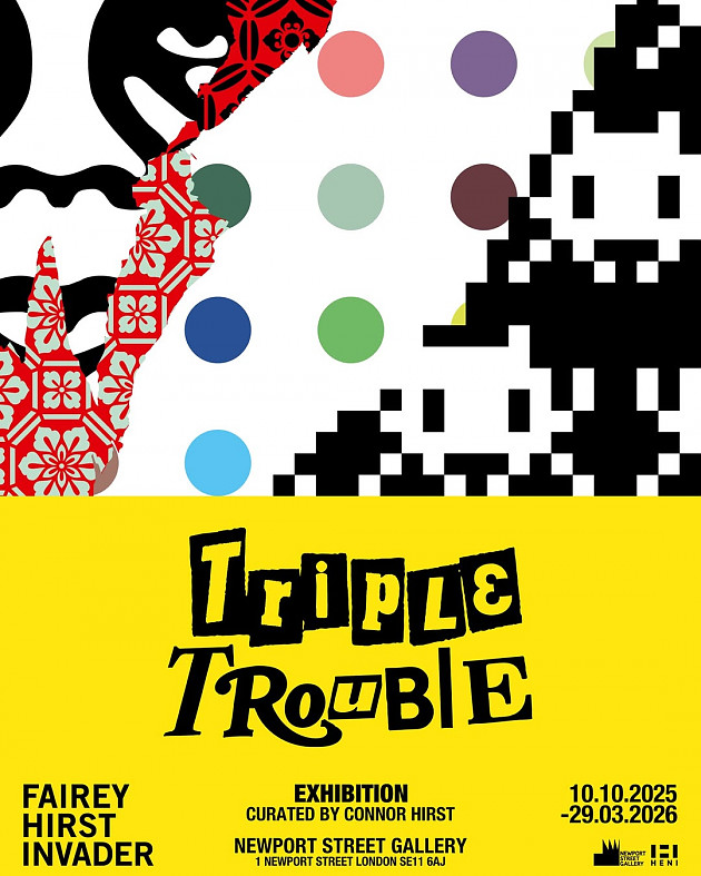 三位藝術家Shepard Fairey、Damien Hirst、Invader前所未有聯展「Triple Trouble」將於10月10日英國倫敦Newport Street Gallery開始舉行!