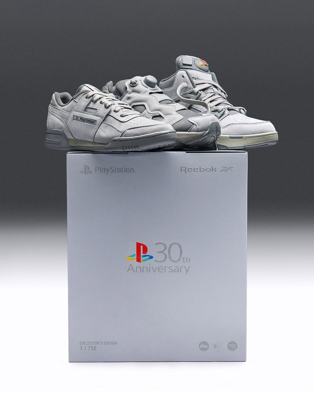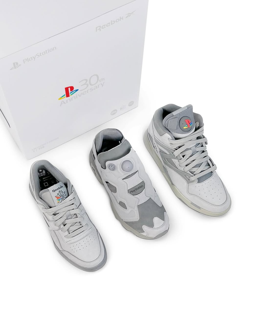 作為慶祝PlayStation三十周年紀念項目一部分,向九十年代文化遊戲盛典作出致敬,與Reebok合作將分別於三個地區推出三個限定鞋款,每鞋款將透過指定地區零售商限量發售(亦將分別舉辦新品發佈活動),系列秉承「致所有熱愛遊戲的你們」理念,設計靈感、灰色主色、細節滿載PlayStation 1主機元素如標誌、字樣、圖案,極具獨特風格懷舊氣息,所有鞋款均採用限量版鞋盒包裝,延續PlayStation初代設計經典元素,其中分別展示當年PlayStation 1推出年份: